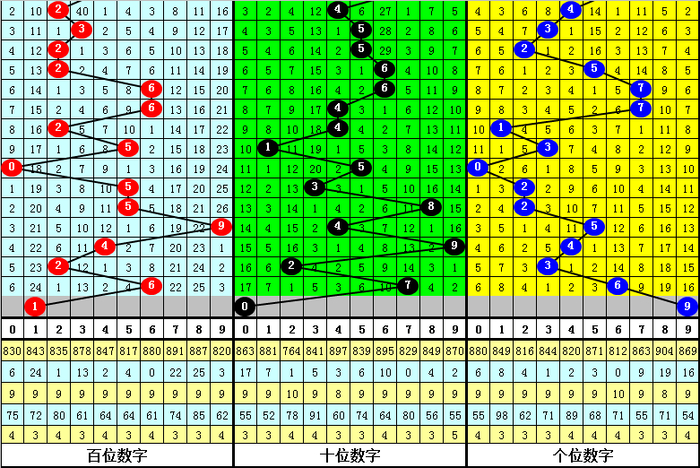 第三位上期开出奖号6,走大3点,本期该位继续走大,参考号码9。