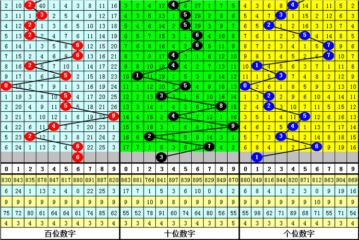 其中两码合0-9开出频次分别为:两码合8开出10次,5开出9次,2、4开出8次,0、3、7开出7次,1开出6次,6、9开出5次,其中两码合大小比为36:36,012路比为24:21:27,奇偶比为34:38;