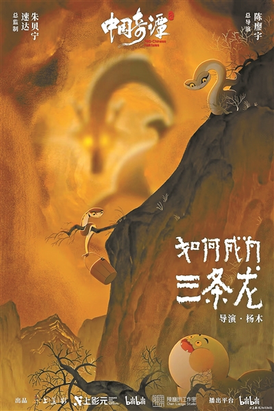 这份“奇”既源自传统文脉的深厚土壤,也必然映照当代人的精神世界。例如,《如何成为三条龙》中,以国画皴法勾勒的干旱村落、质朴灵动的小蛇形象,在视觉质感上延续了首季《小妖怪的夏天》的温暖与亲切。其故事内核——小人物在荒诞境遇中意外肩负重任,那份“知其不可为而为之”的担当与勇气,正是对中式侠义精神与价值实现命题的当代转译。《耳中人》中水墨素描的肌理、傀儡戏元素的化用,让古老的《聊斋》故事焕发新生,将“耳中人”巧妙转化为内心欲望与认知执念的视觉隐喻,在虚实交错的叙事中,完成对现代人自我认同困境的深刻探讨。