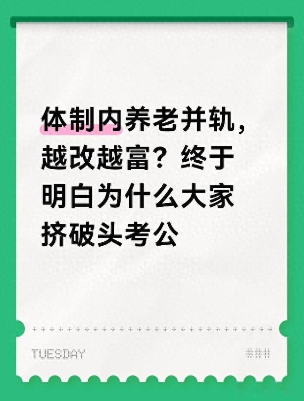 在劳动波动大、企业不平安确当下,体制内“从入职到终老”的全链条保障,越过是并轨后更程序、更自如的养老轨制,当然成为无数东说念主追求的“安全港”。
