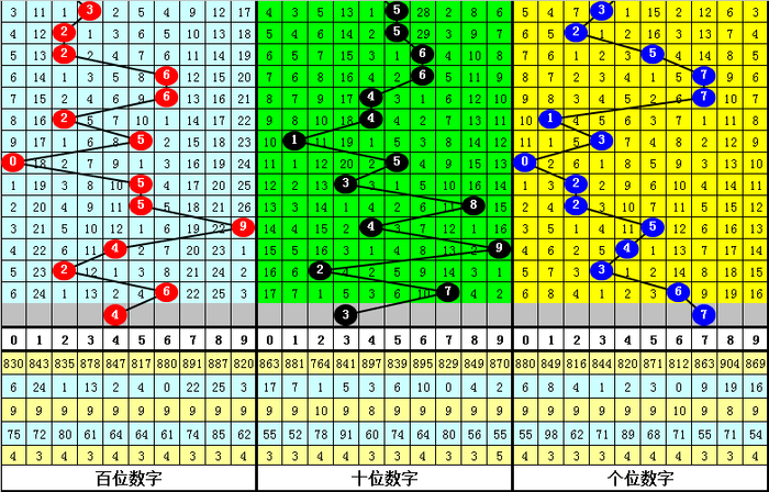 跨度分析:最近周三跨度出现范围在2-9区间,跨度比较集中,上周三跨度为5,跨度上升了3个点位,本期预计跨度下降,参考跨度4。