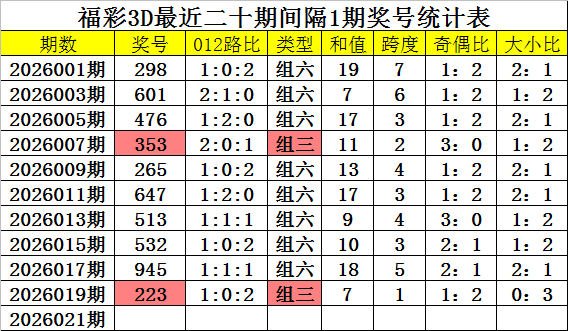 奖号类型分析:从近期周三开奖数据分析,组六号码最近十周出现5次,表现较冷,当期轮空2周,组三开出5次,表现相对较热,本周三预计组六号码回补。