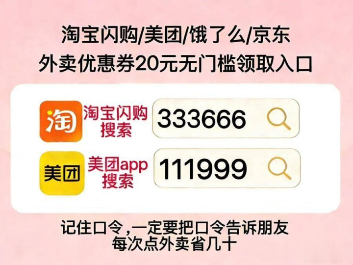 一、淘宝闪购搜什么口令领外卖券?好意思团京东外卖口令全汇总